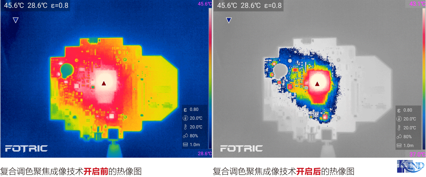 利用FOTRIC自主研发的复合调色聚焦成像技术 ,其出色的热成像质量,非常适用于复杂场景中分析特定目标的细微温差,有利于现场快速得出正确的诊断结论。