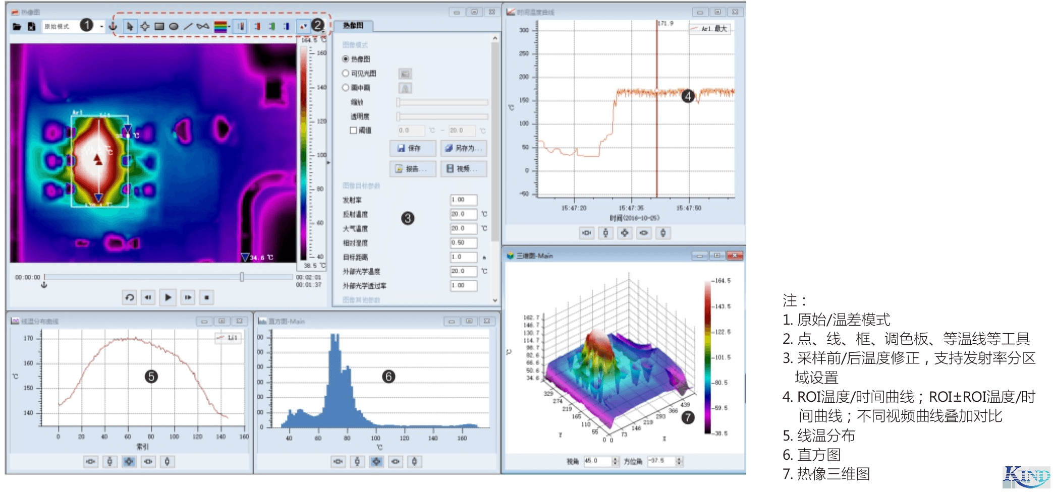 本机分析 | 有,在热像仪上可直接分析拍摄的全辐射热像照片与全辐射热像视频 | |||