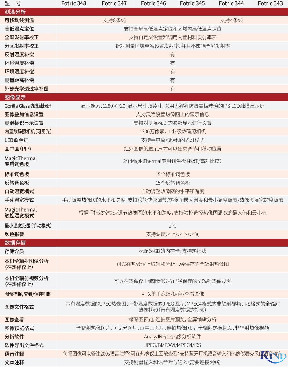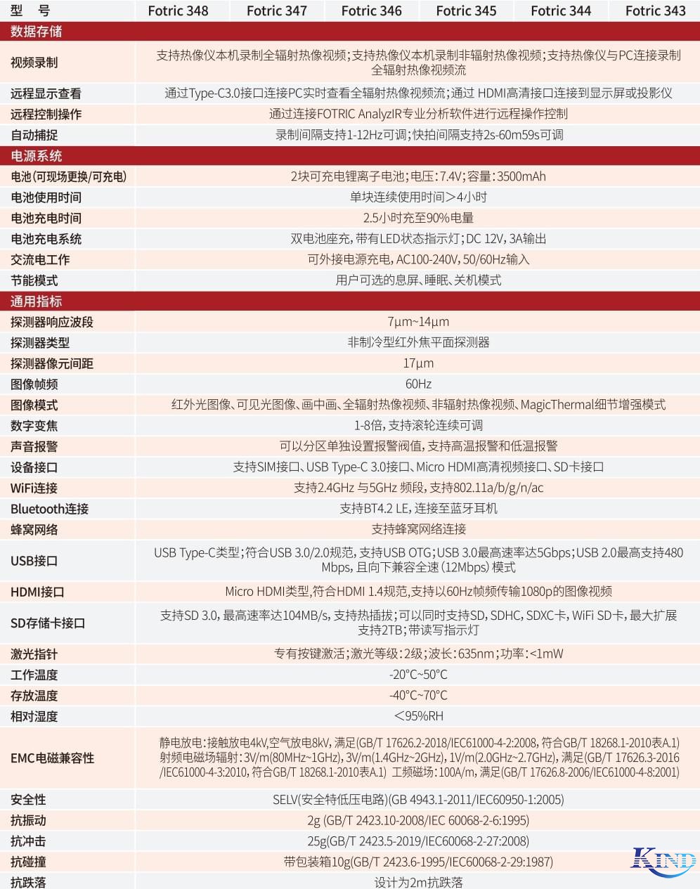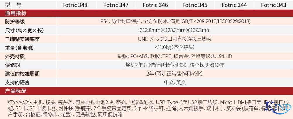 产品型号 | Fotric 348 | Fotric 347 | Fotric 346 | Fotric 345 | Fotric 344 | Fotric 343 |